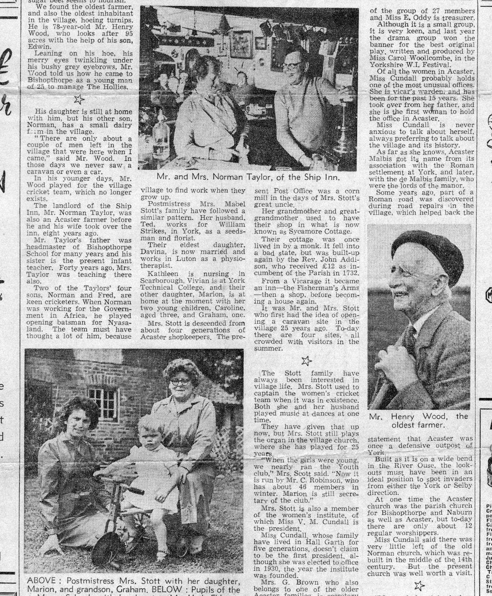 Newspaper article about Acaster Malbis (page 1)