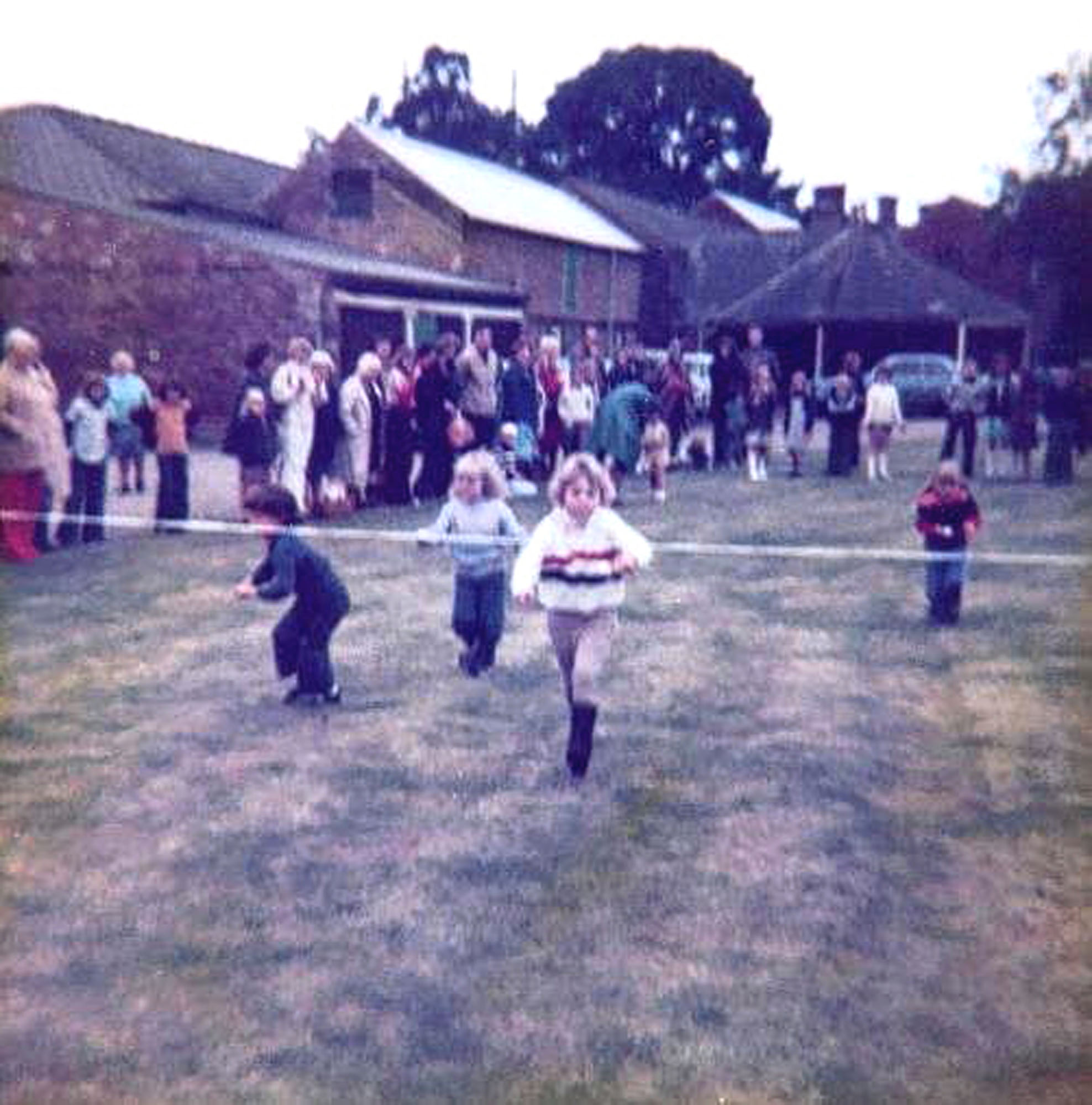 Garden fete sports sack race, Glebe Farm